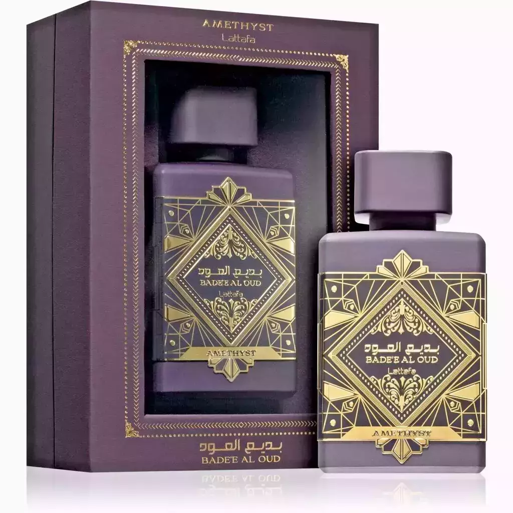 Bade'e Al Oud Amethyst de Lattafa Perfumes es una fragancia de la familia olfativa Oriental Vainilla para Hombres y Mujeres. Bade'e Al Oud Amethyst se lanzó en 2021. Las Notas de Salida son pimienta rosa y bergamota; las Notas de Corazón son rosa turca, rosa de Bulgaria (rosa Damascena de Bulgaria) y jazmín; las Notas de Fondo son madera de oud, ámbar y vainilla.